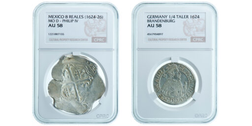 Грейдинг и слабирование макукина Филиппа IV (1624–1626 годов), немецкого 1/4 талера 1624 года и швейцарского полуталера 1796 года