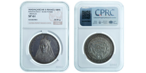 Грейдинг и слабирование пробных 5 франков Мадагаскара