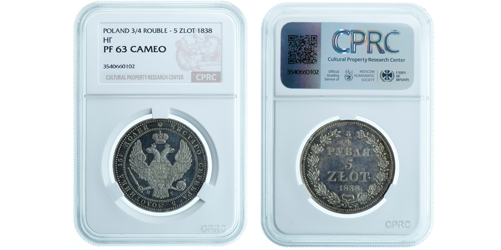 ЦИКЦ провел грейдинг и слабирование редчайших 3/4 рубля — 5 злотых 1838 НГ