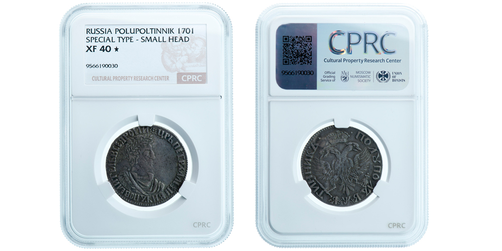 ЦИКЦ провел грейдинг и слабирование редчайшего полуполтинника 1701 года с «римским профилем»