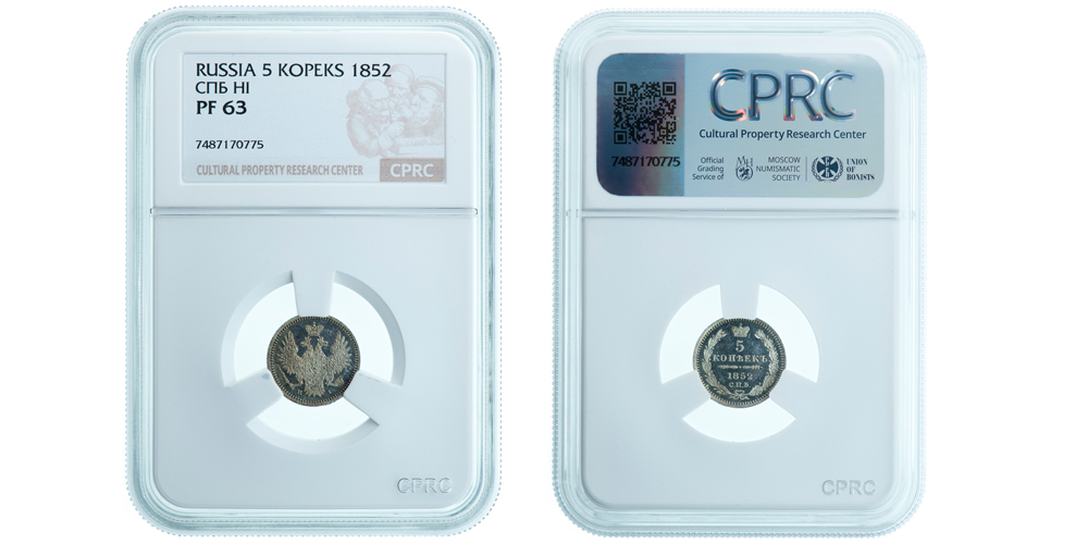 ЦИКЦ провел грейдинг и слабирование редчайших 5 копеек 1852 года HI