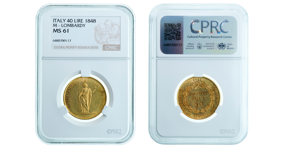 Грейдинг и слабирование 40 лир 1848 года. Ломбардия
