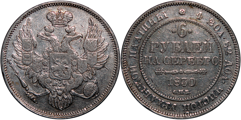 Следует отметить, что платиновые монеты 6-рублёвого номинала встречаются довольно редко