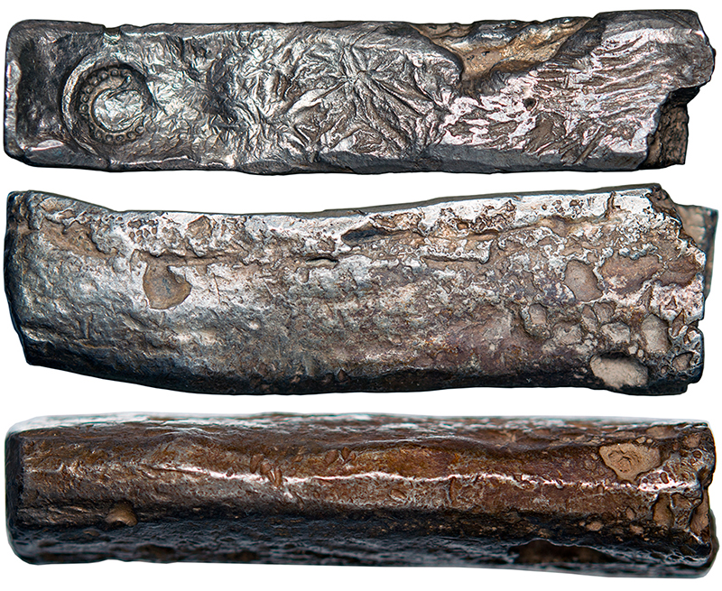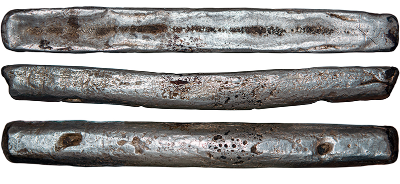 На боковой поверхности ближе к одному из концов слитка имеется девять нанесенных острым предметом насечек.