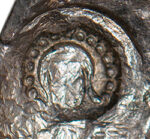На верхней грани полтины имеется округлое клеймо с изображением головы человека с длинными волосами, анфас.