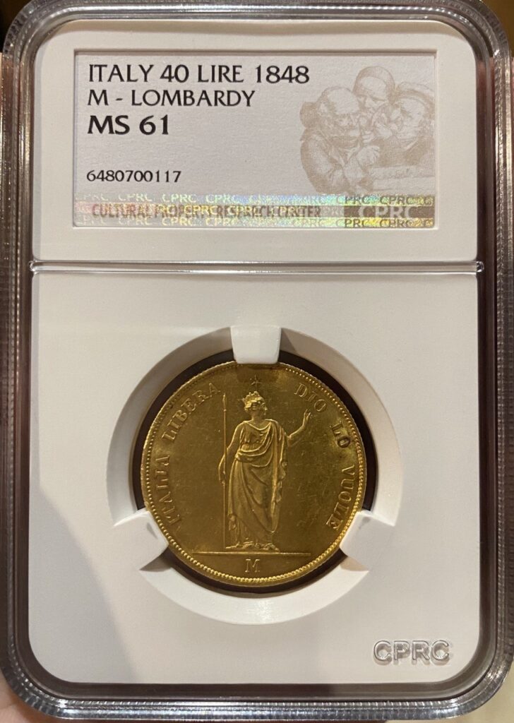 Новости Грейдинг и слабирование 40 лир 1848 года. Ломбардия