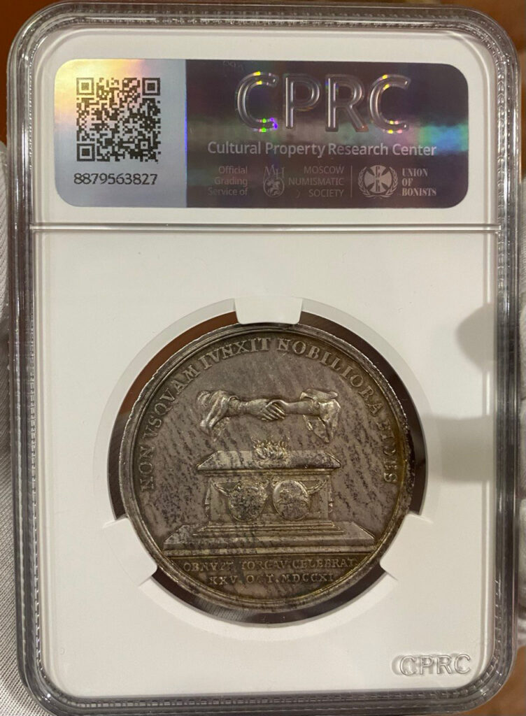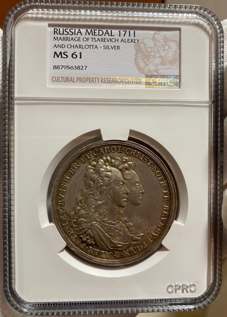 ЦИКЦ провел грейдинг и слабирование медали 1711 года. В память бракосочетания царевича Алексея с принцессой Шарлоттой