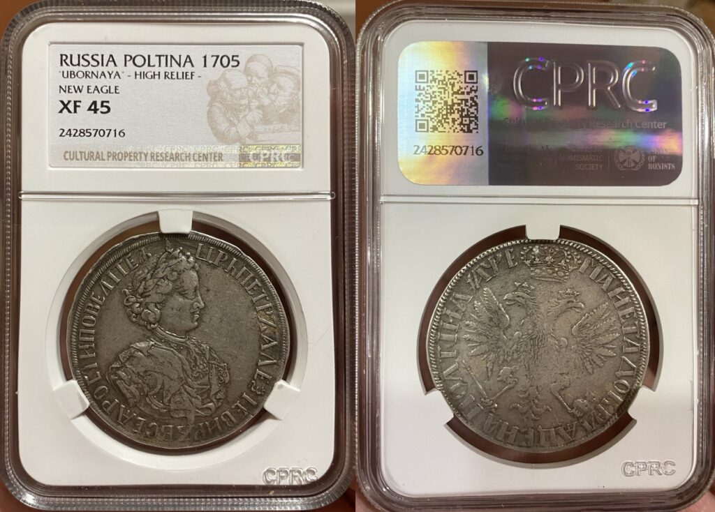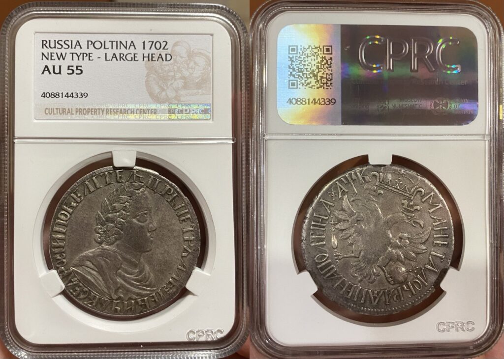 ЦИКЦ провел грейдинг и слабирование полтины 1702 года «большая голова» и 1705 года «уборная», высокий рельеф