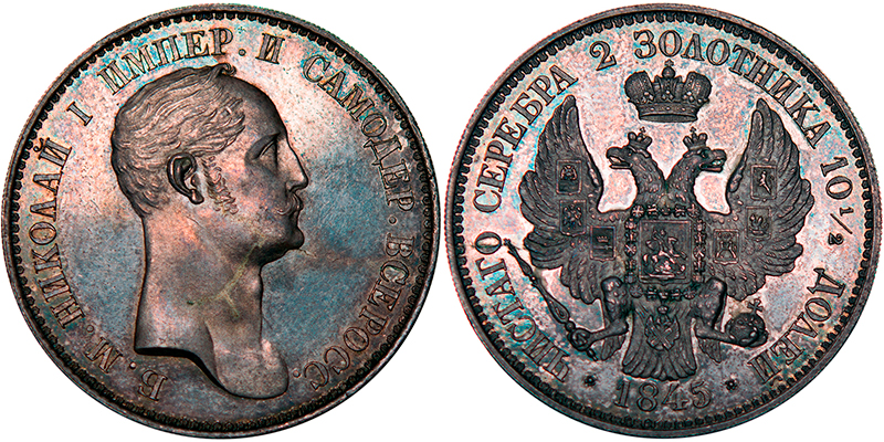 Экспертиза и слабирование пробной «Рейхелевской» полтины 1845 года