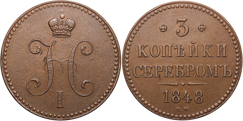 3 копейки 1848 года МW