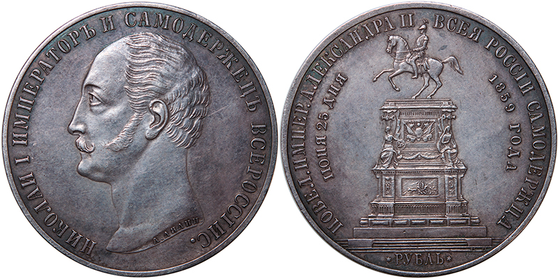 1 рубль 1859 года. Памятник Николаю I «конь»