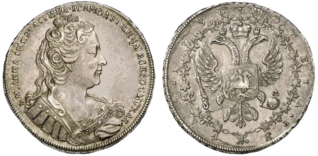 Рис. 2. Рубль Анны Иоанновны, 1730 года, пробный. Фото аукционного дома Kuenker.