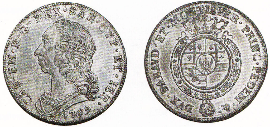 Рис. 4. Скудо Карла-Эммануила III 1769 г., Савойя, герцогство. Серебро, 43,5 мм.