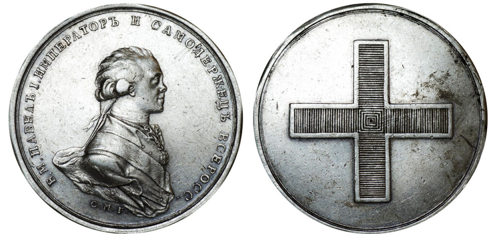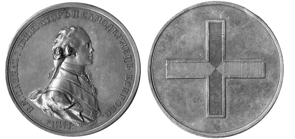 Во-вторых, оба портрета на гравюрах лишены важного элемента, который присутствует в изображении Павла на некоторых более поздних медалях и живописных портретах. Речь идет о знаке Мальтийского ордена.