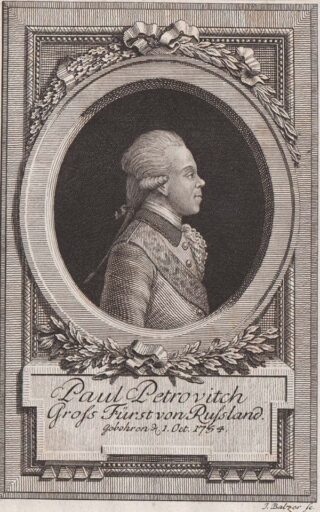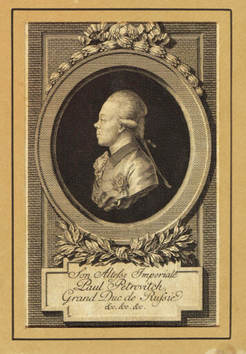 Рис. 3. Иоганн Бальцер (Johann Balzer). Портрет великого князя Павла Петровича: [Эстамп]. 1780-1790-е. Гравюра резцом, пунктиром.