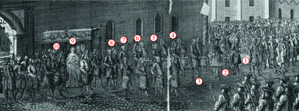 18. Фельдмаршал Граф Брюсов с людьми определенными к бросанию в народ жетонов.