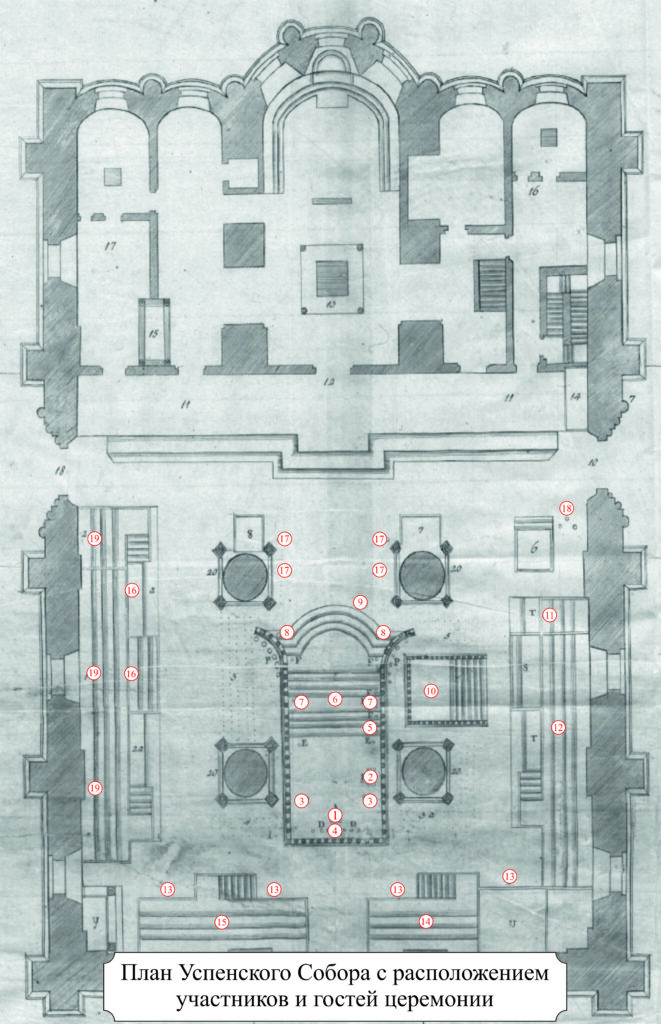 В 9 утра в Успенском соборе по звуку благовеста собрались архиереи и другие духовные лица, ожидая прибытия императрицы.