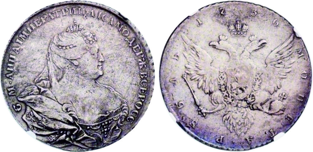 Тиражный рубль 1736 года. Портрет Гедлингера