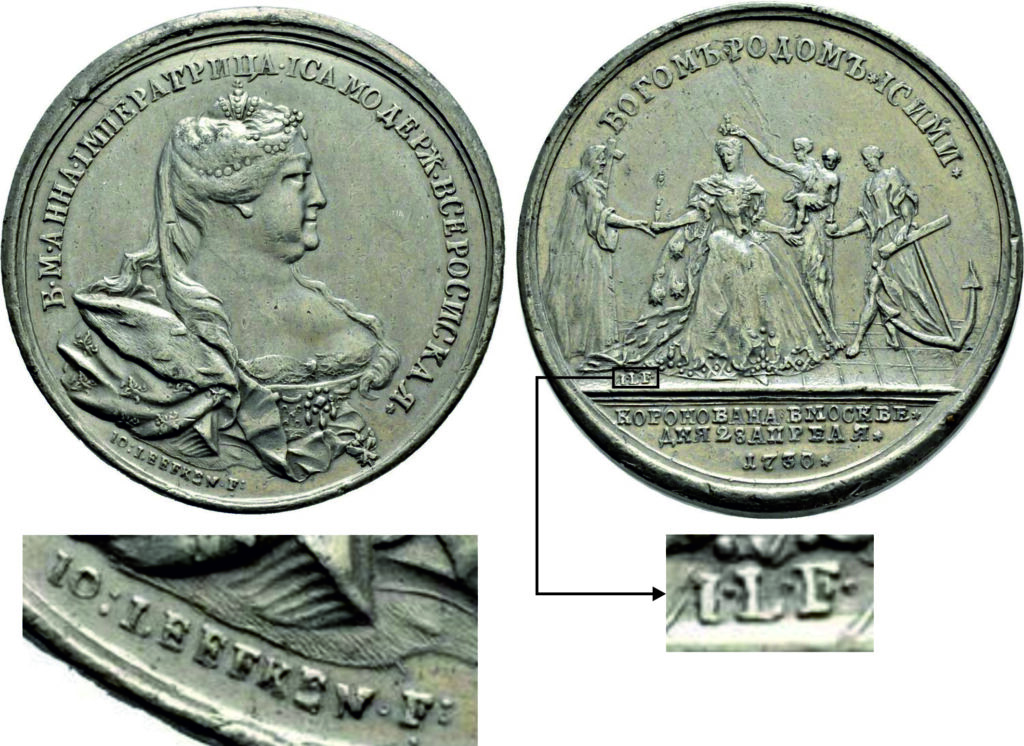 Под сюжетом коронации инициалы медальера I•L•F• (И. Лефкен исполнил)