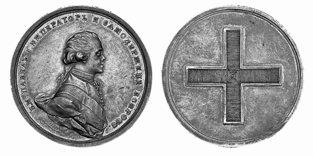 Легенда о роковом луидоре, который способствовал аресту Людовика, переросла у Павла в навязчивую фобию к портретам на монетах. Как результат император распорядился чеканить на лицевой стороне рублевиков и других монет крупного достоинства монограмму. В итоге павловская портретная иконография предметов малой пластики ограничилась чеканкой пробных монет и медальными композициями (рис. 8, 9).
