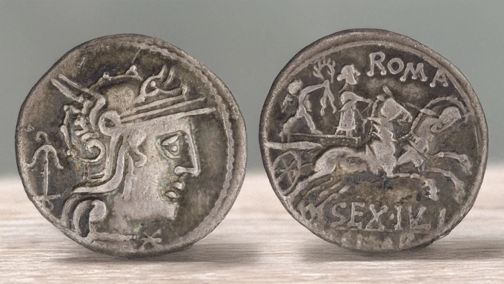 Рис. 1. Денарий, выпущенный Секстом Юлием Цезарем, 129 г. до н.э.
